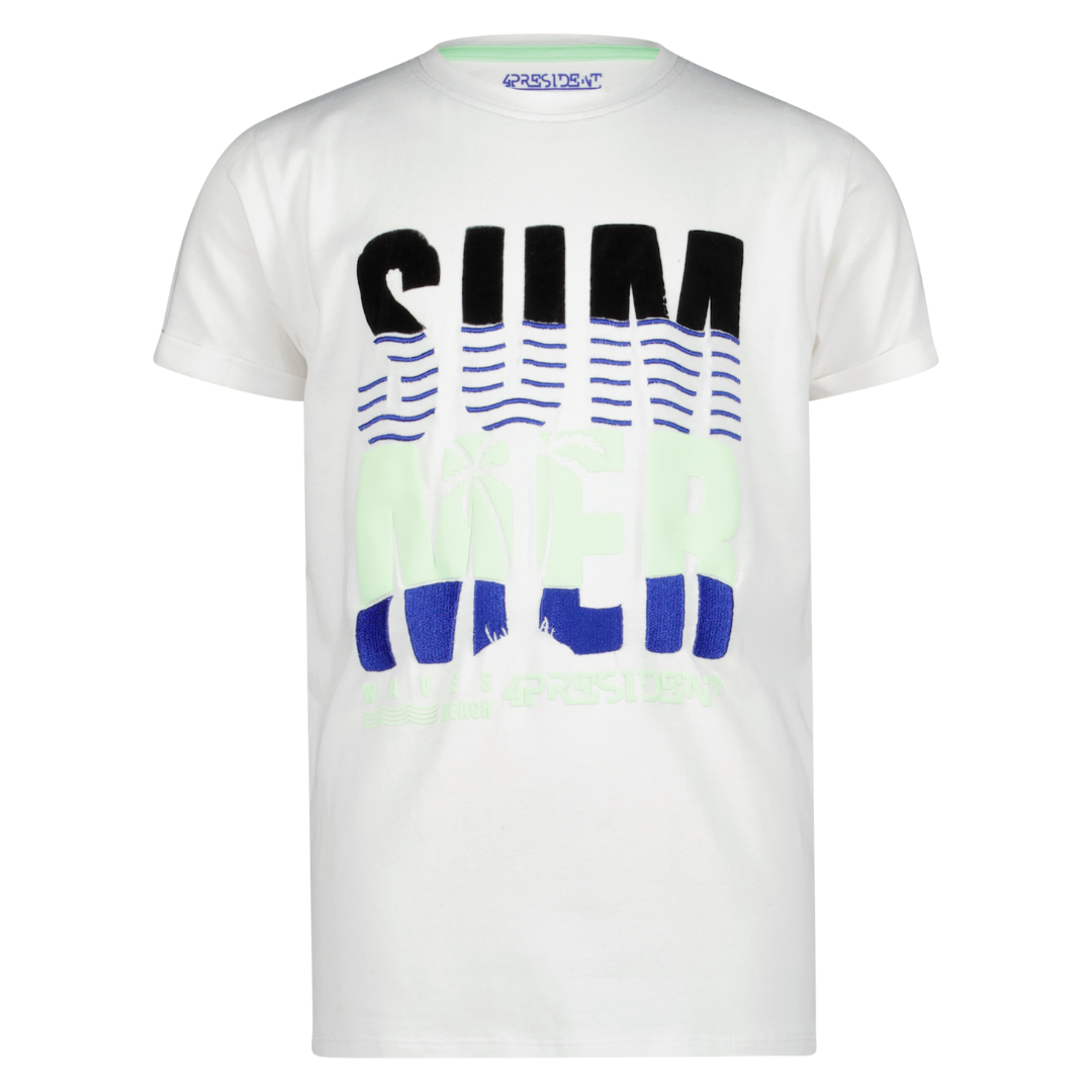4PRESIDENT Evan jongens t-shirt met korte mouwen, print op de borst met 'Summer Waves' en 4PRESIDENT logo.