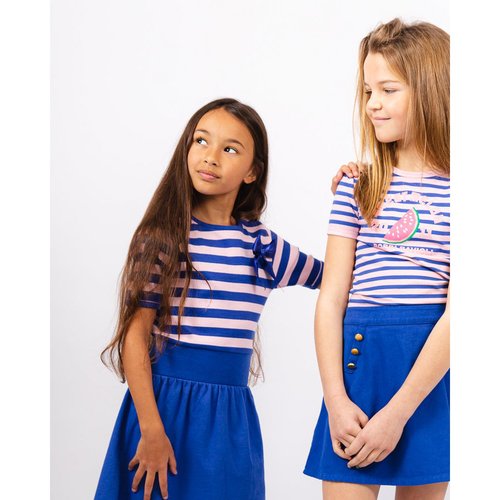 T-shirt met korte mouw met print in kobalt blauwe en roze strepen.