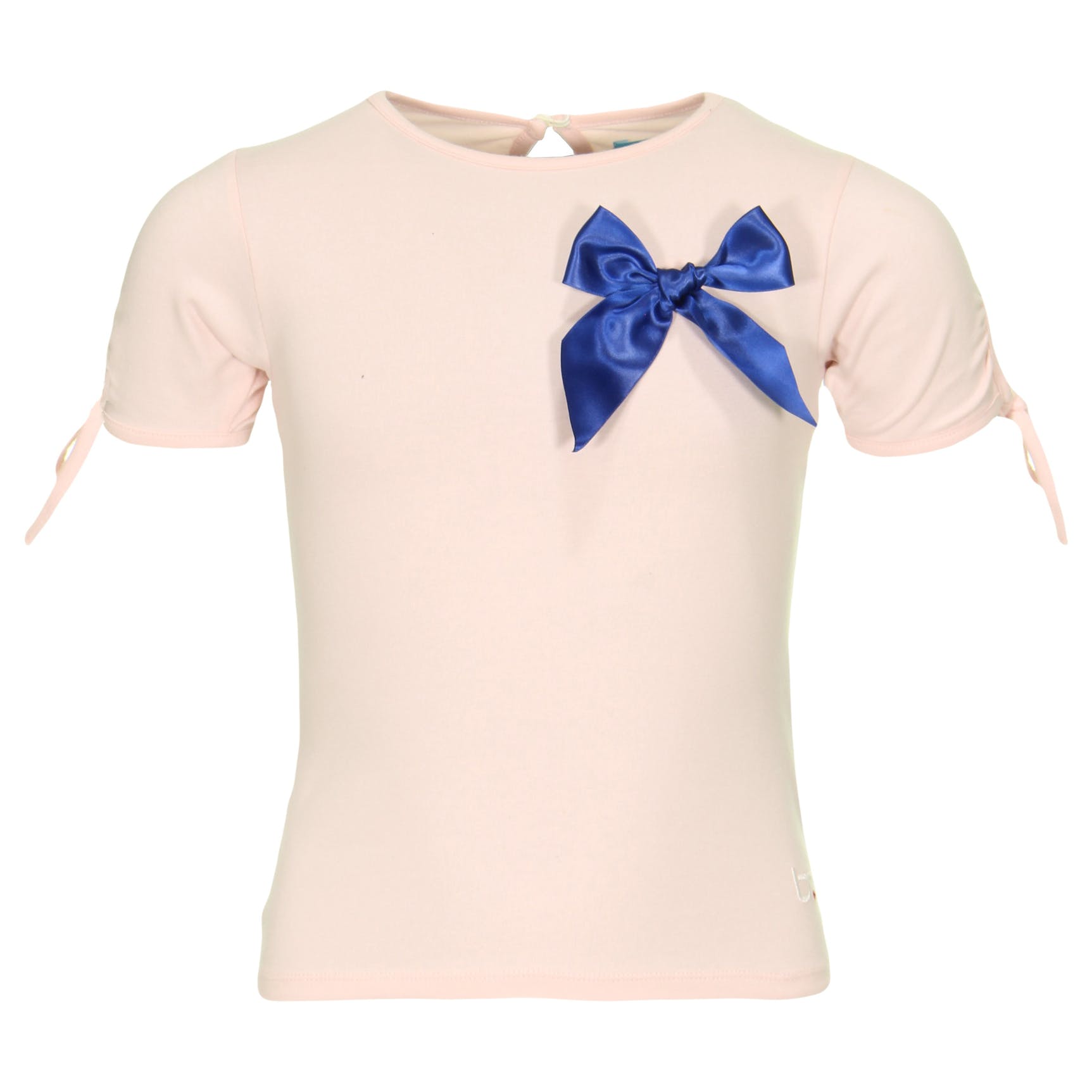 T-shirt met leuk detail op de mouw in Pale Rose. Dit T-shirt heeft een press button waarop je een strik kan klikken, zo creëer je in een handomdraai je eigen look voor meiden.