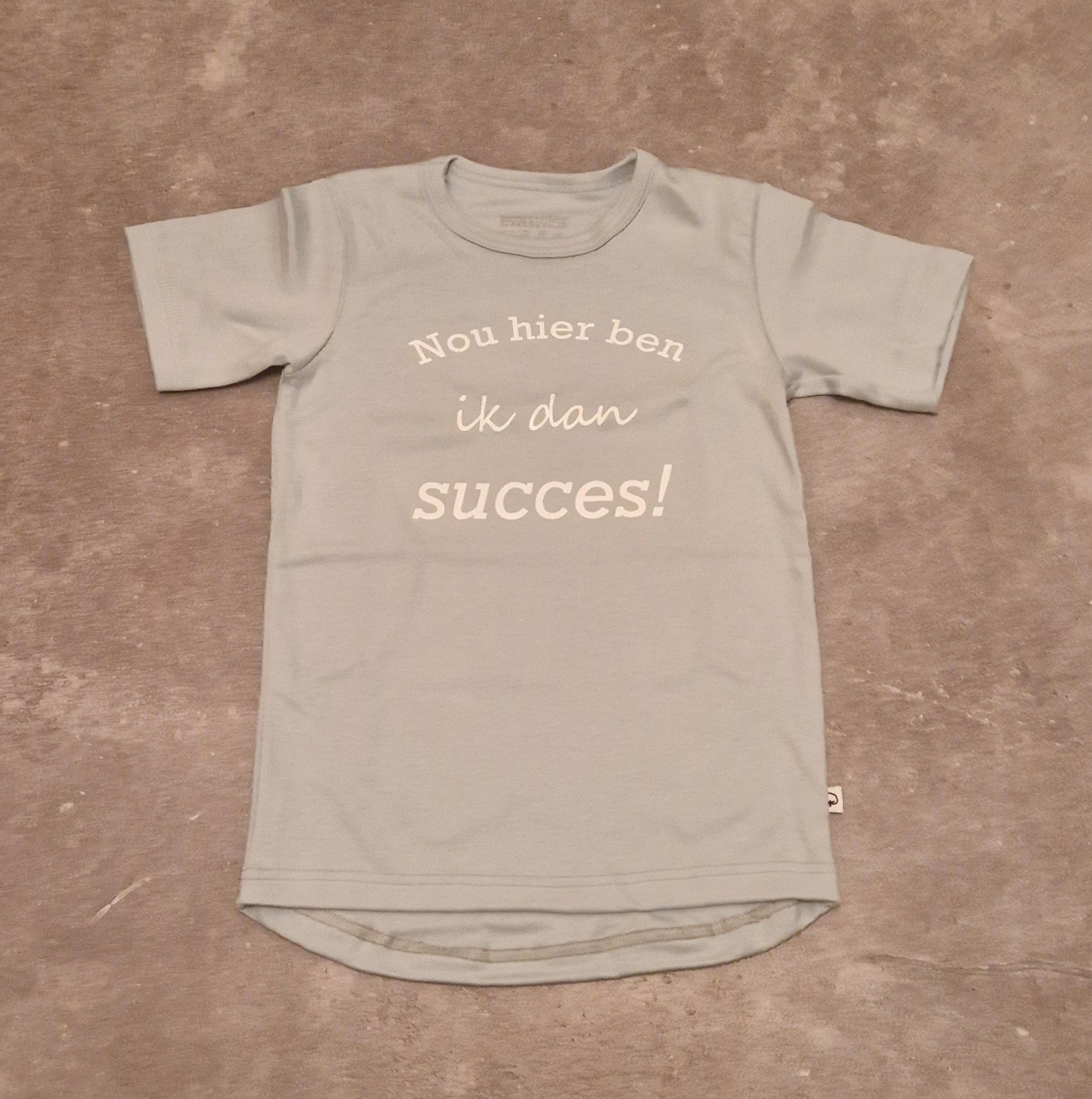 Custom made shirt met de tekst nou hier ben ik dan succes! In meerdere kleuren verkrijgbaar.