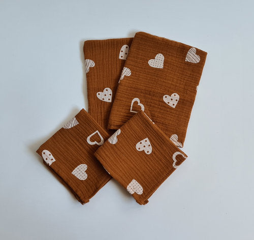 Malo Kids hydrofiel set middel - Donker ocker hartjes