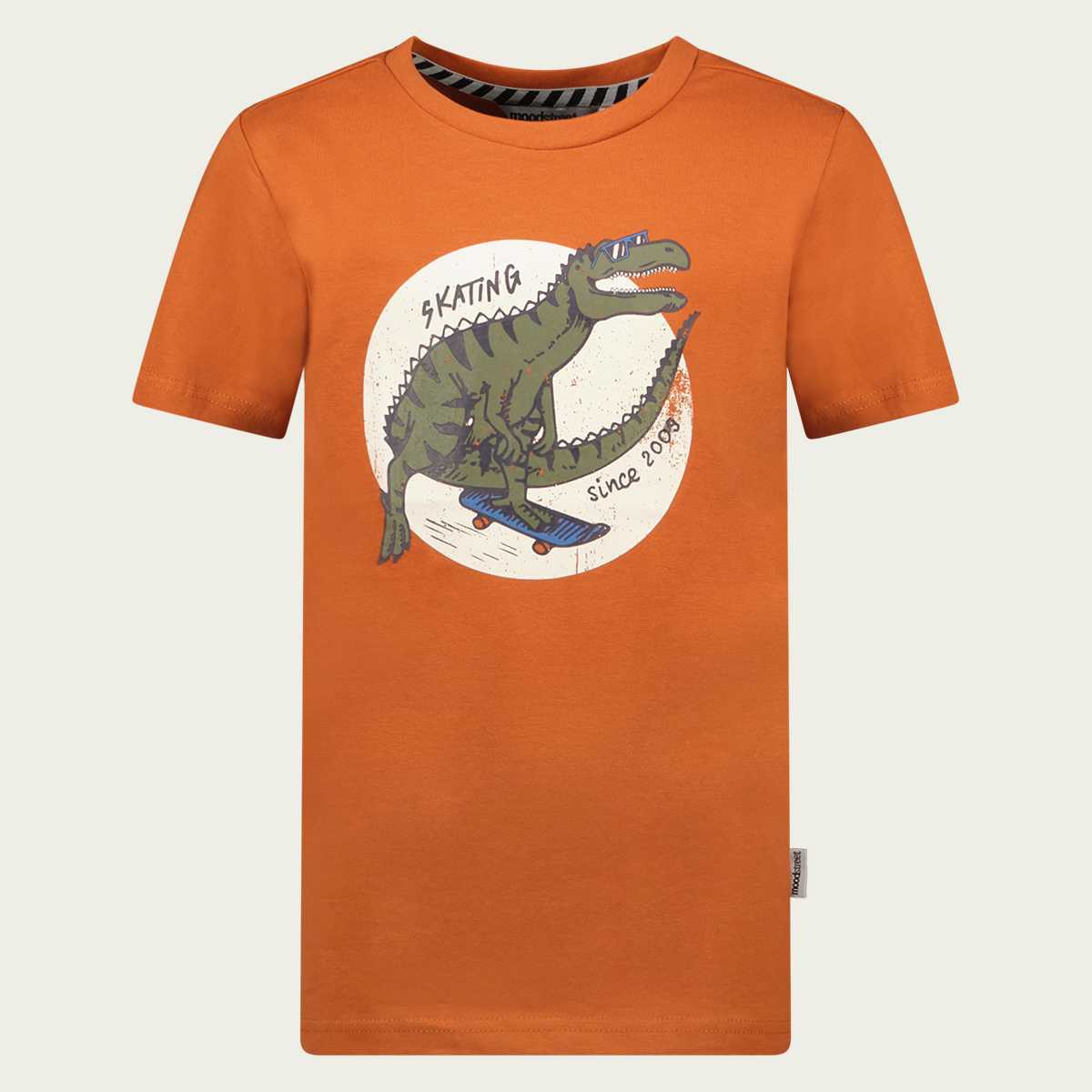 De topper, deze skatende T-rex! Dit Moodstreet t-shirt in een warme terra kleur past heel makkelijk op iedere denim. De jersey kwaliteit is heerlijk comfi door de lekkere stretch, de katoen is Cotton Made in Africa.