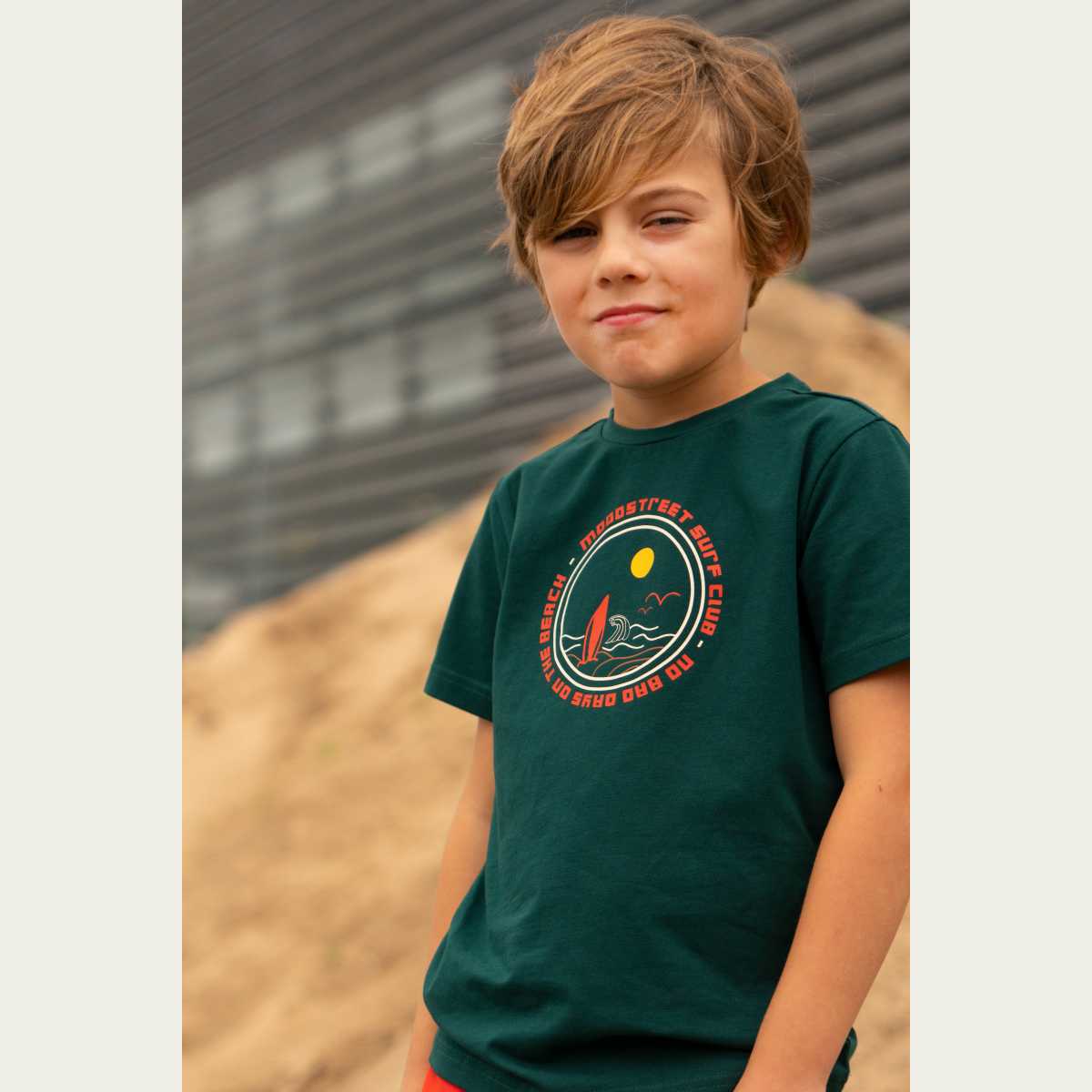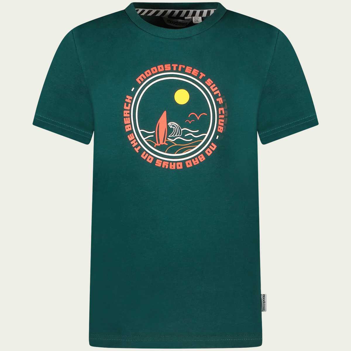 FEELS LIKE SUMMER! Dit basic bottle groene Moodstreet t-shirt met een stoere grafische print op het voorpand. De katoen is Cotton Made in Africa.
