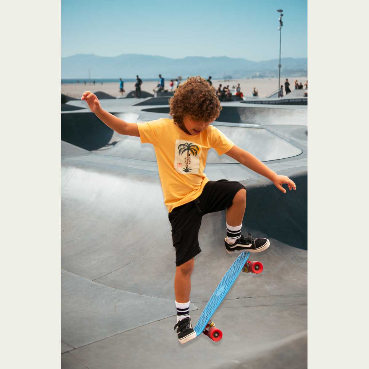 FEELS LIKE SUMMER! Dit basic Moodstreet t-shirt in een frisse softe geel heeft een superstoere zomerse print op het voorpand. De katoen is Cotton Made in Africa.