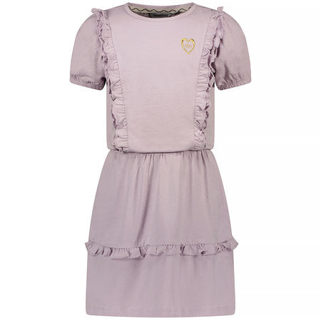 Ready for summer in dit hippe Moodstreet jurkje in een mooie lila kleur met elastiek in de taille. Het jurkje heeft ruffles aan de voorkant en een pofmouwtje. De strokenrok heeft een extra ruffle en op de linkerborst een glitter Moodstreet borduur, extra girlish! Als je voor dit item kiest, steun je het "Cotton made in Africa" initiatief.