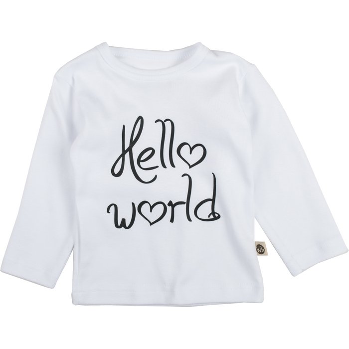 Comfortabel t-shirt met lange mouwen en print 'hello world'.